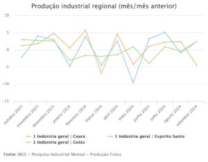 Na passagem de agosto para setembro, a produção industrial brasileira cresceu 1,1%, com alta em sete dos 15 locais investigados